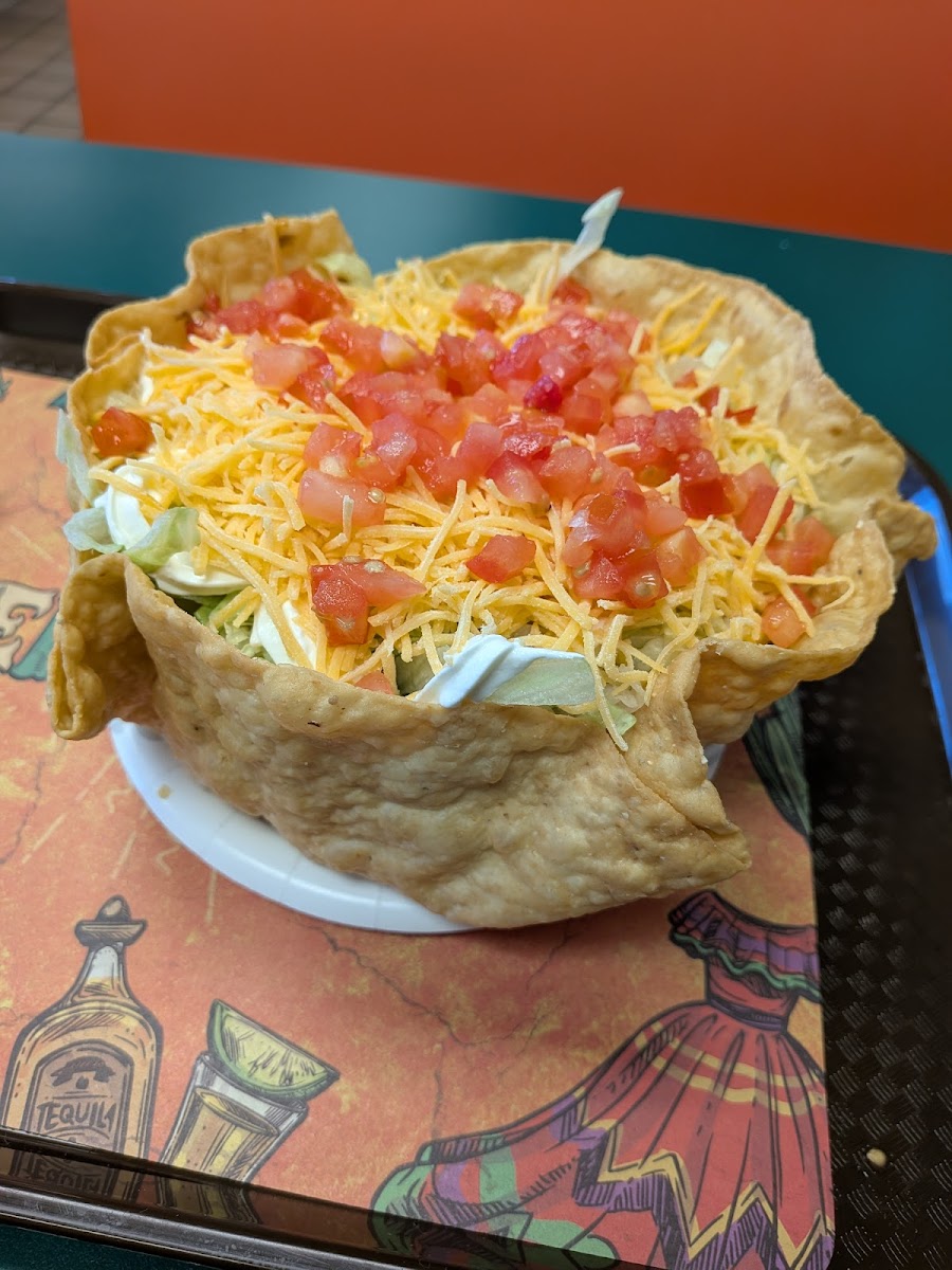 Free standing restaurant on this busy road selling Mexican food. Drive through, carry out and dine in options. Selling Coke fountain products and some ice cream desserts. Parking lot is tight and you order at the counter and a few minutes later your order is ready.